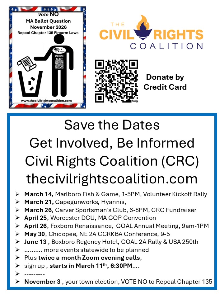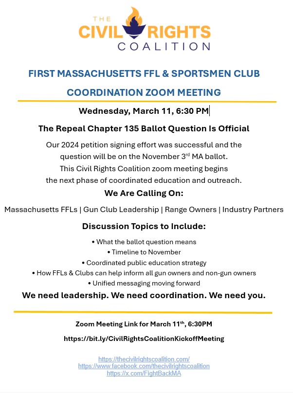 Read More…: Civil Rights Coalition kicks off 2026 Zoom series to educate and motivate our base of supporters to Repeal Chapter 135. First call – March 11th, 6.30PM